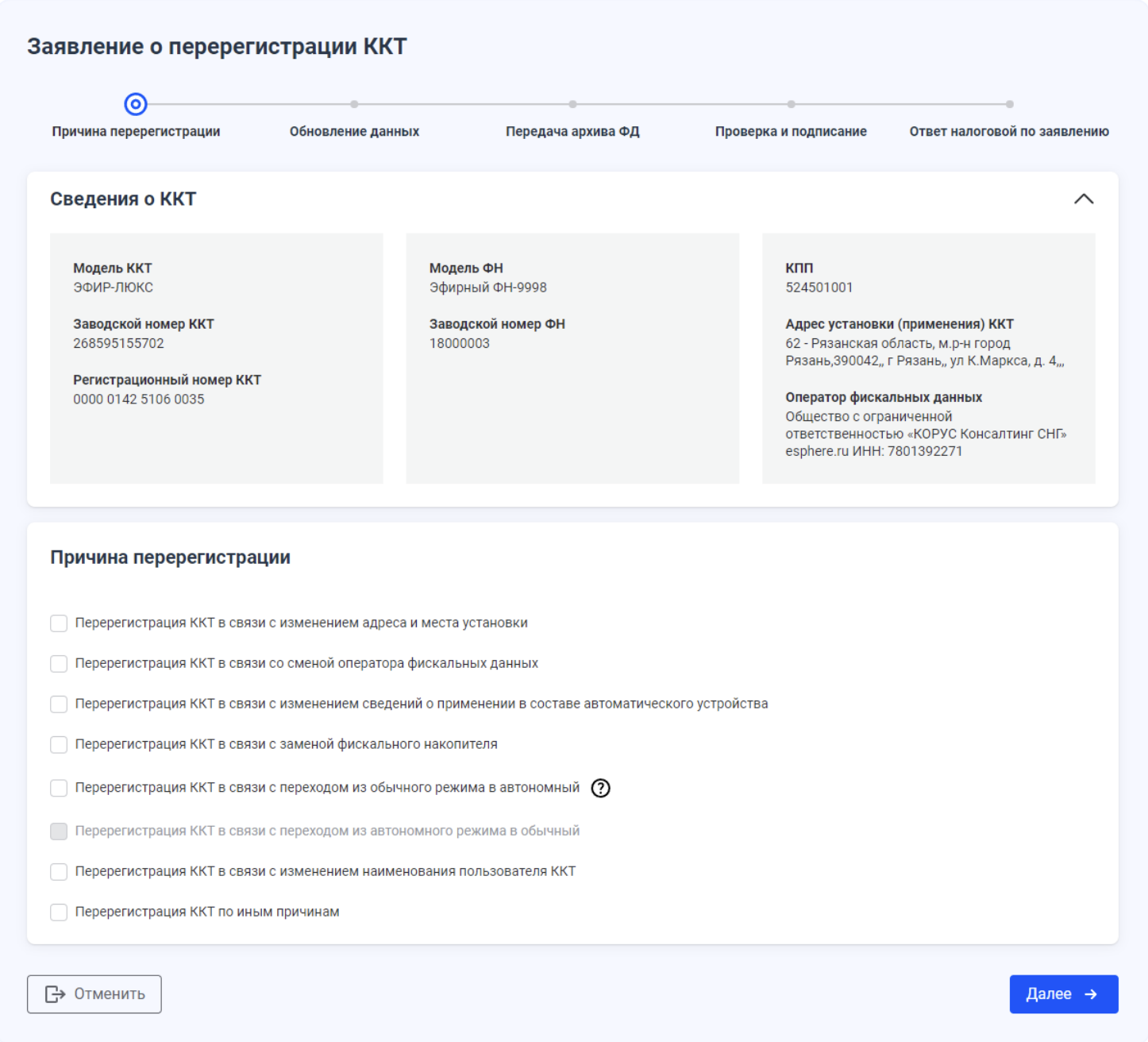 Перерегистрация ККТ — процесс обновления данных о контрольно-кассовой технике в Федеральной налоговой службе. Это необходимо, чтобы ФНС знала, какие реквизиты изменились.