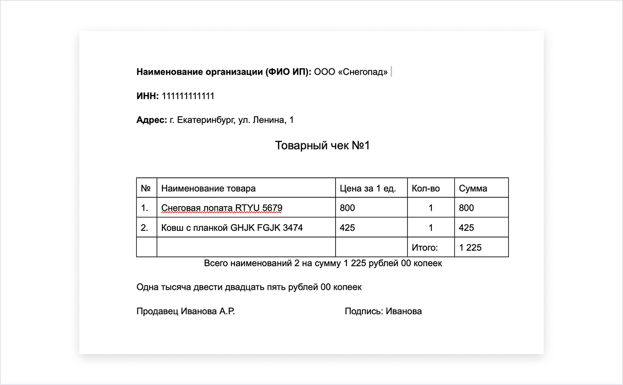 Иван оформляет товарные чеки вручную, указывает сведения о товаре и свои контакты. Поселок включен региональными властями в перечень удаленных территорий, где применение кассы не требуется, поэтому деятельность предпринимателя законна.